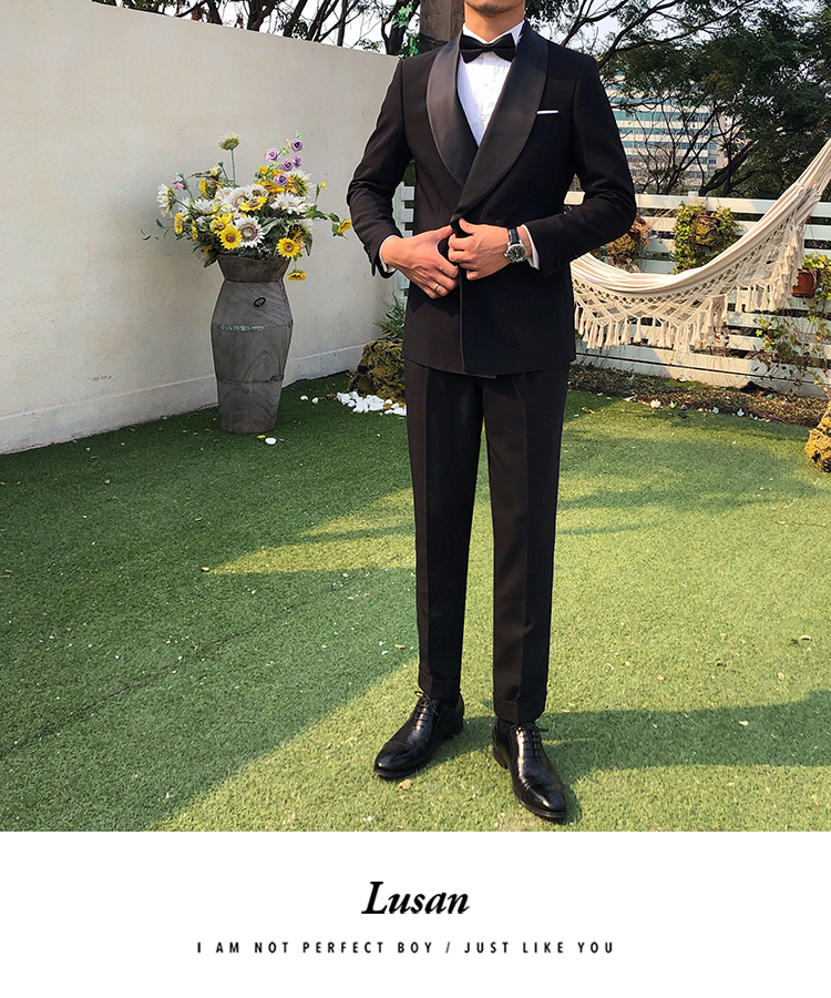 SPECIFICATIONS Fabric: Chemical fiber blend Pattern: Solid color Placket: one double breasted button Clothing version: Straight type Slit way: Side slit Collar width: Regular collar type (collar width 7-9cm) Suit craft: Adhesive lining process Material composition: Polyethylene terephthalate (polyester) 80% viscose fiber (viscose fiber) 18% polyurethane elastic fiber (spandex) 2%