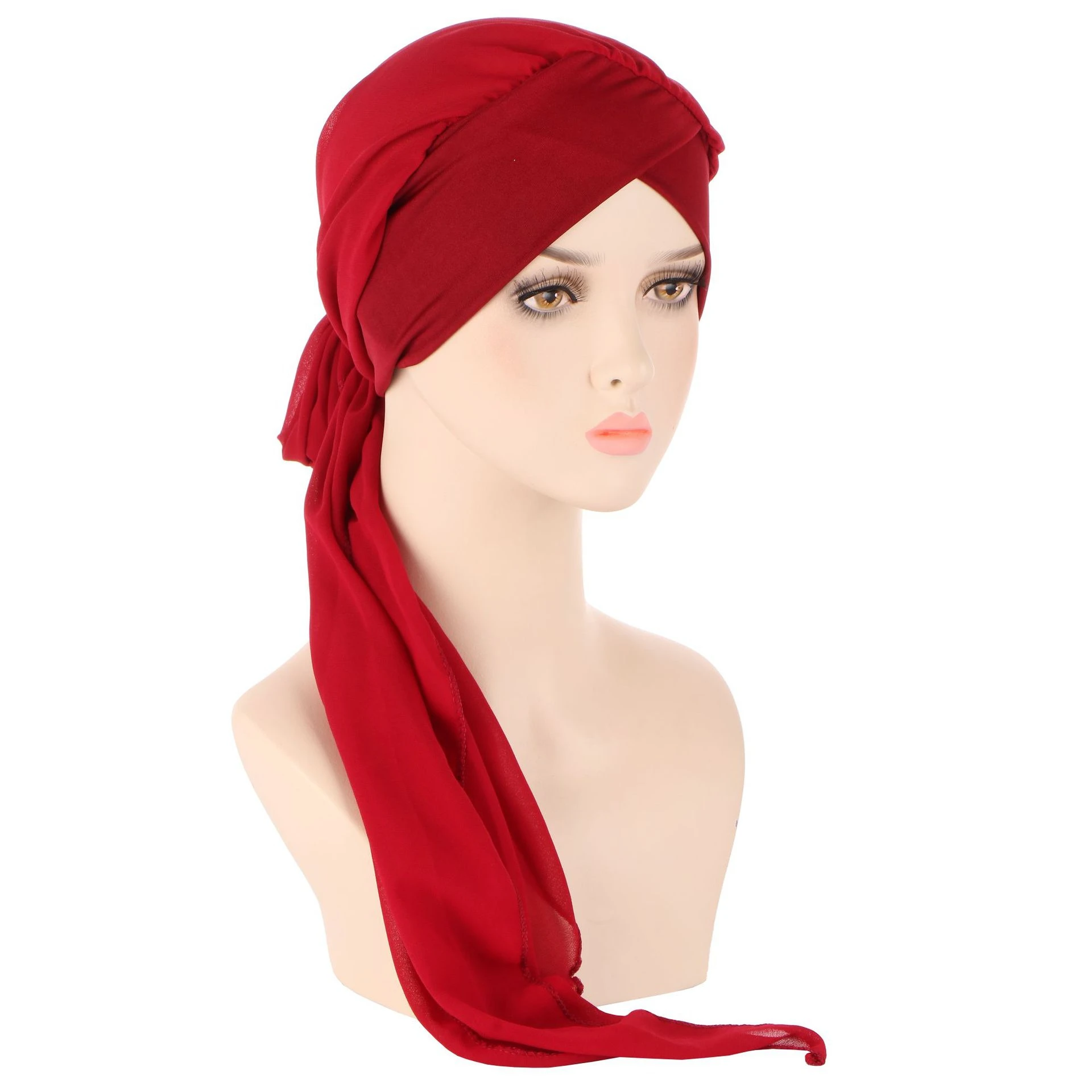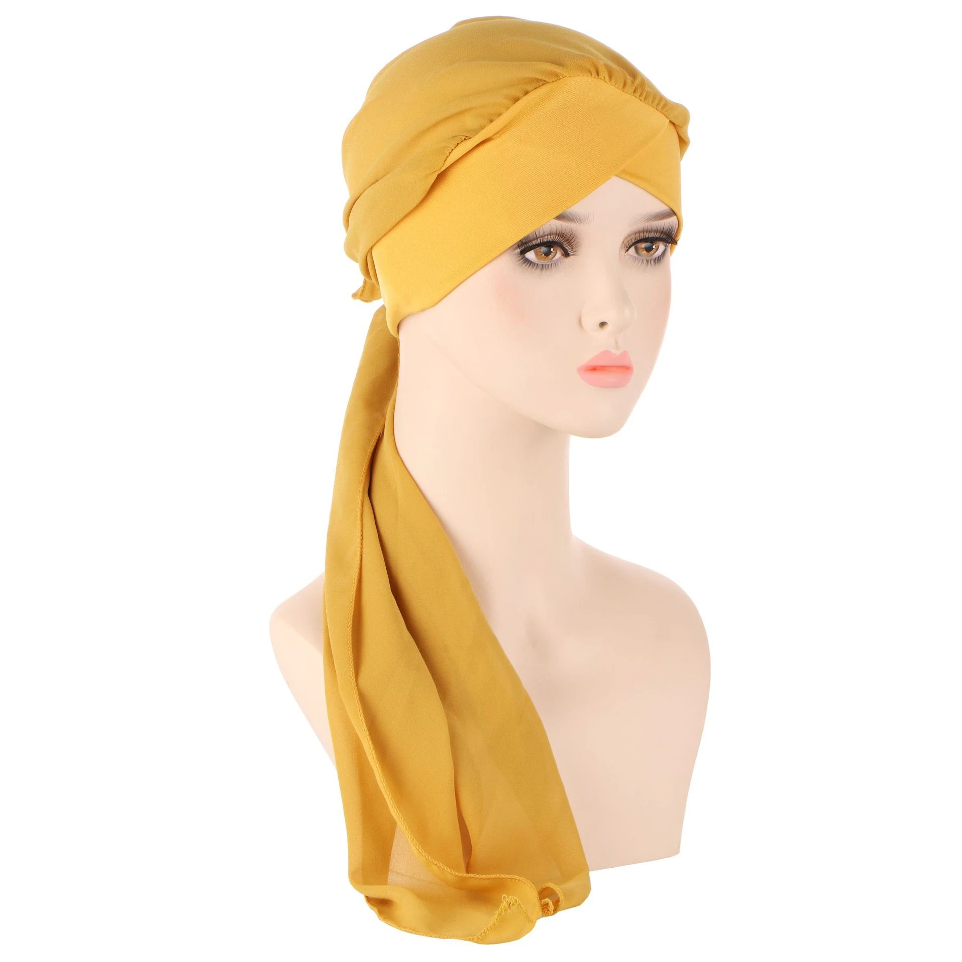 Women Fashion Pre Tied Headscarf Wrap Long Tail Turban Bonnet Bandanas